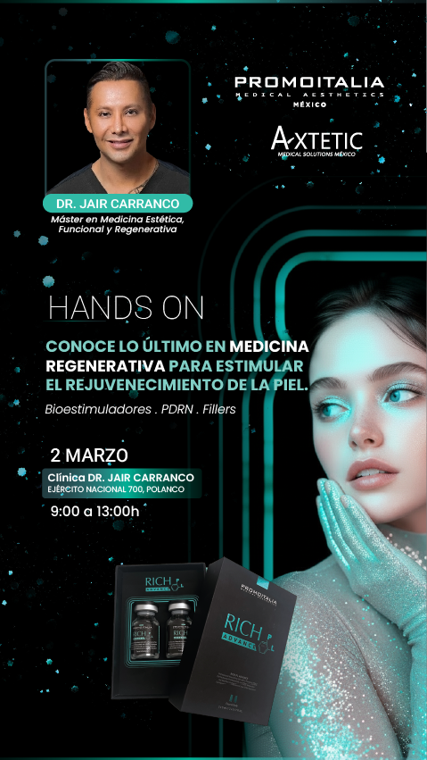 No se pierda nuestro próximo Hands On de la mano del Dr. Jair Carranco, en donde se abordarán temas desde Anatomía, Bioestimuladores, PDRN, Fillers... entre otros.